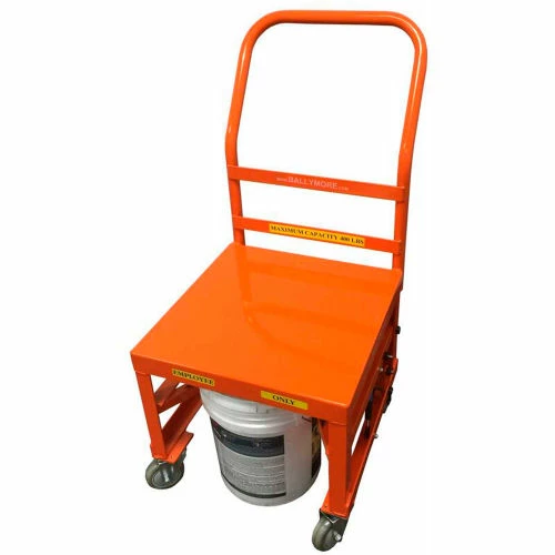 Designed to ease the transport of 5 gallon containers. Heavy duty -400 lb capacity with patent pending lifting device. Shelf adds additional transport options. Less back strain and improved productivity. Color-Orange
