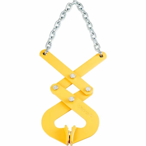 Pull loaded pallets and skids, plus slide heavy crates, etc. to the edge of dock or truck so they can be picked up with a forklift truck. Variable jaw width grabs the pallet securely and automatically releases. 3.3″ maximum jaw opening, primarily used for center stringer pulling. Each grip pad area is 3″L x 3″L.