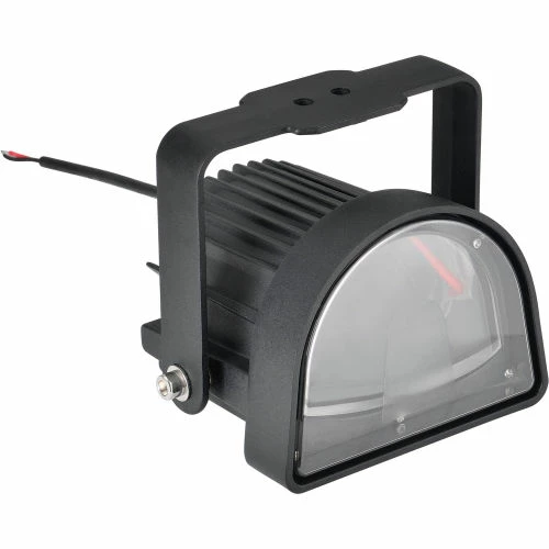 The 10 watt solid-state LED (Light Emitting Diode) light yields 900 lumens, and is enclosed in an IP68 rated aluminum die-cast housing with a shock-resistant acrylic lens. Safety light uses the vehicle electrical power to operate and can be installed on the rear of any forklift, sweeper, AGV or industrial vehicle (configured for 10 Volt to 80 Volt DC input range, with reverse voltage protection). 50,000 hour service life LED’s. Working environment temperature is 5 to 113Β° F. Universal adjustable steel mounting bracket allows for easy installation. 1 Year Limited Warranty.