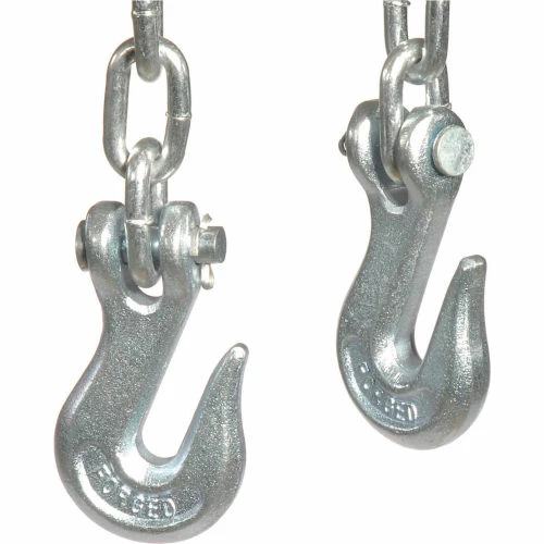 Chain is 1/4″ thick with a hook on both ends. 1,250 lbs. capacity.