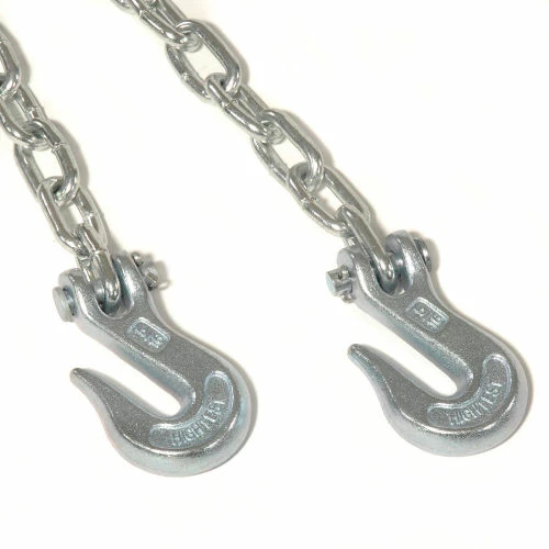 Chain is 1/4″ thick with a hook on both ends. 1,250 lbs. capacity.