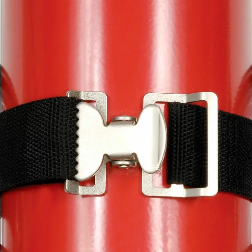This cylinder bracket easily mounts to a permanent vertical surface for safe cylinder storage. It supports cylinders from 3-1/2″ to 12-1/2″ in diameter. The 1-1/2″ polypropylene strap has a steel cinch buckle. Mounting hardware is not included. Complies with OSHA and NFPA standards.